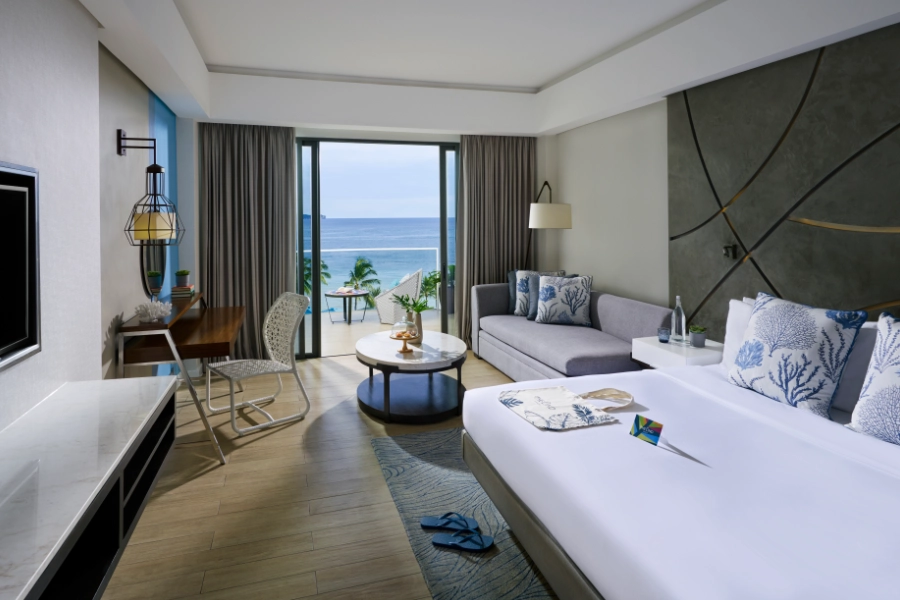 The resort blends contemporary, design-forward architecture with a relaxed, beach-chic vibe. Spacious rooms and suites work equally well for couples, families, and multi-generational groups, with many offering balconies and sweeping views of the ocean or lush gardens. Throughout the property, you’ll find warm Filipino hospitality—attentive, friendly service that feels polished yet genuinely personal.